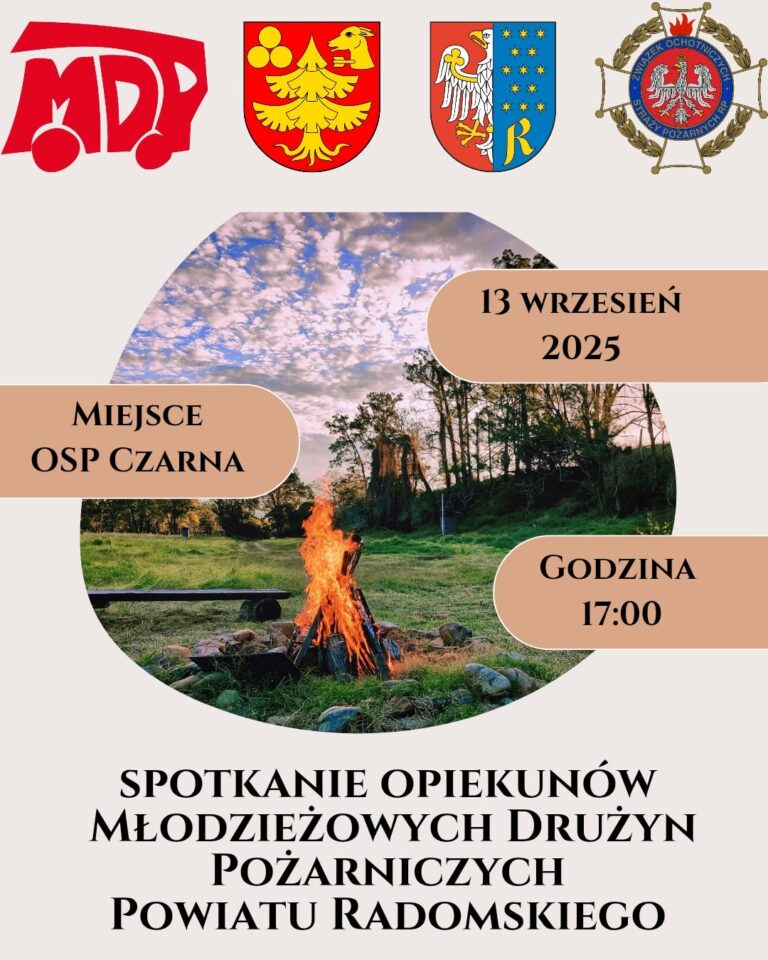 Zapraszamy opiekunów MDP z terenu powiatu radomskiego na spotkanie, które odbędzie się 13 września 2025 roku w remizie OSP Czarna (gm. Pionki). Z każdej OSP, przy której działa Młodzieżowa Drużyna…
